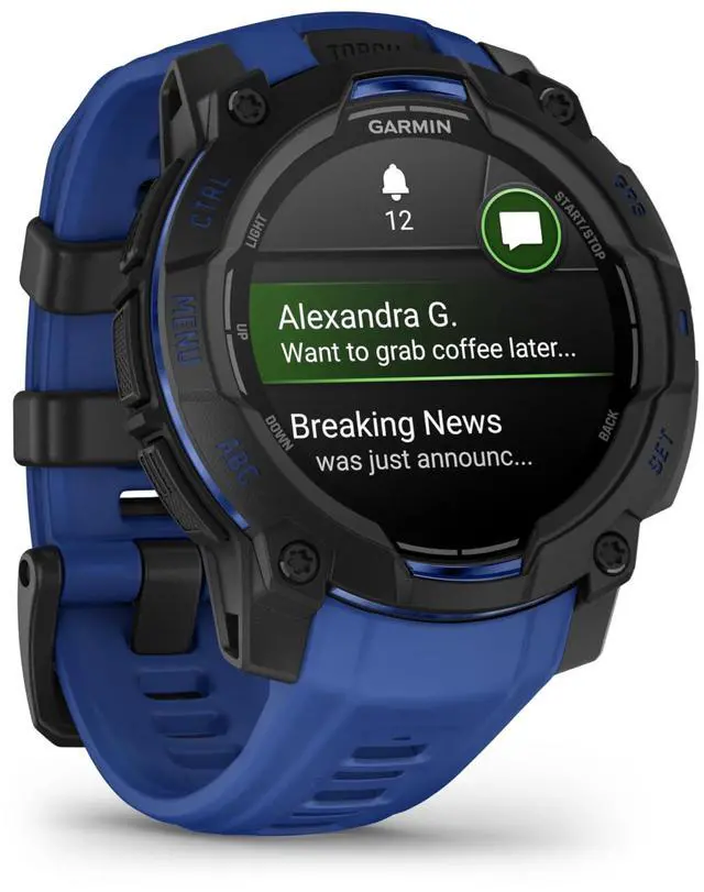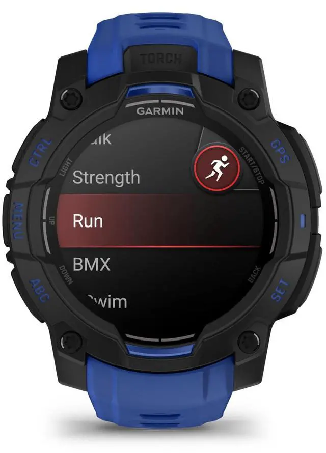Instinct® 3 is the rugged 45 mm GPS smartwatch with a 1.2 AMOLED display, a built-in flashlight and up to 18 days of battery life in smartwatch mode. With bolted construction, a metal-reinforced bezel and scratch-resistant lens, it can take on your toughest adventures. Its engineered to MIL-STD-810 standards for thermal and shock resistance and is also 10 ATM water-rated. To keep you on track, the Instinct 3 smartwatch includes a built-in 3-axis compass and barometric altimeter. Plus, multi-band GPS with SatIQ technology delivers superior positioning while also optimizing battery life.