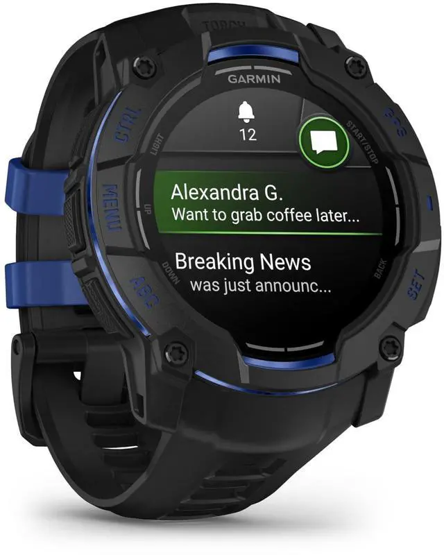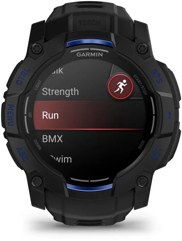 Instinct® 3 is the rugged 50 mm GPS smartwatch with a 1.3 AMOLED display, a built-in flashlight and up to 24 days of battery life in smartwatch mode. With bolted construction, a metal-reinforced bezel and scratch-resistant lens, it can take on your toughest adventures. Its engineered to MIL-STD-810 standards for thermal and shock resistance and is also 10 ATM water-rated. To keep you on track, the Instinct 3 smartwatch includes a built-in 3-axis compass and barometric altimeter. Plus, multi-band GPS with SatIQ technology delivers superior positioning while also optimizing battery life.
