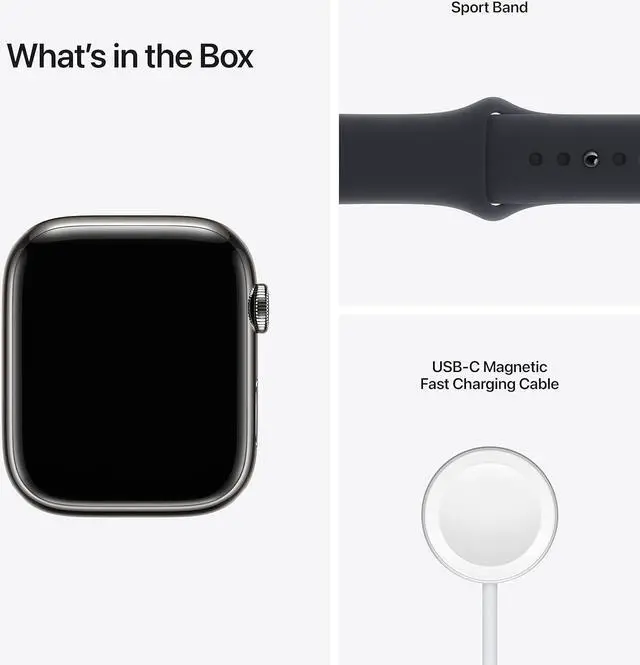 Apple Watch Series 7 45mm GPS + Cellular Graphite Stainless Steel Case - Midnight Sport Band