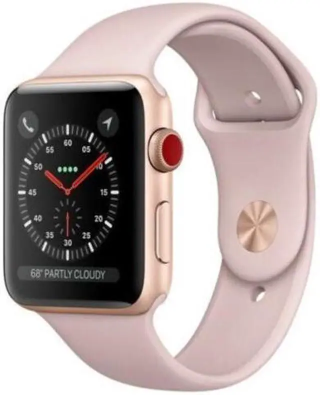 Apple Watch Series 3 42mm GPS + Cellular Unlocked - Gold Aluminum Case - Pink Sport Band (2017) - Good Condition