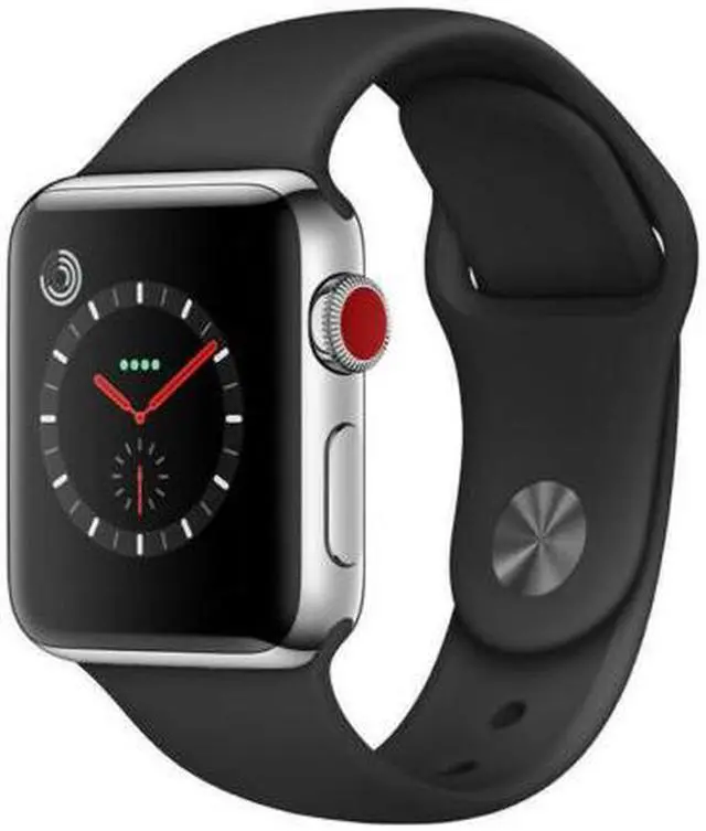 Apple Watch Series 3 42mm GPS + Cellular Unlocked - Silver Stainless Steel Case - Black Sport Band (2017) - Good Condition