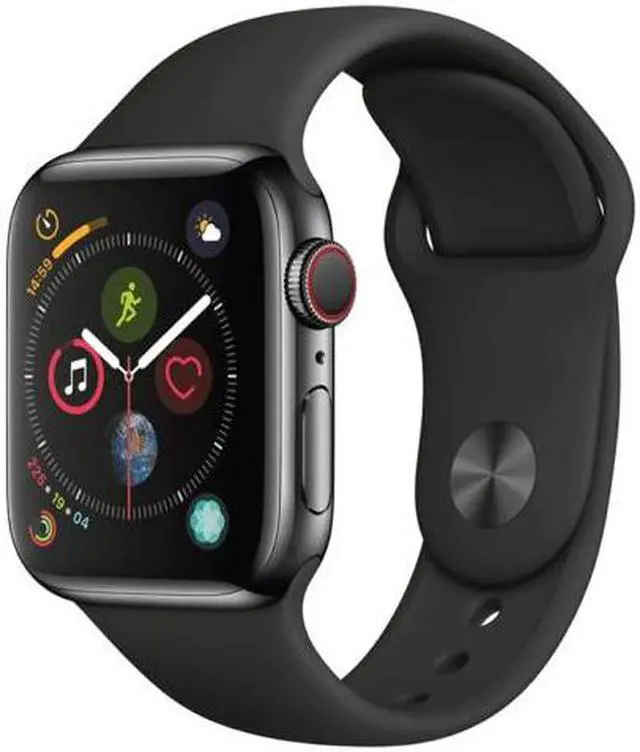 Apple Watch Series 4 44mm GPS + Cellular Unlocked - Space Black Stainless Steel Case - Black Sport Band (2018) - Good Condition