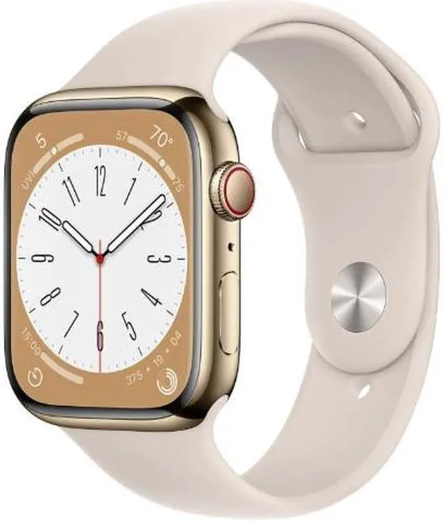 Apple Watch Series 8 45mm GPS + Cellular Unlocked - Gold Stainless Steel Case - Starlight Sport Band (2022) - Good Condition