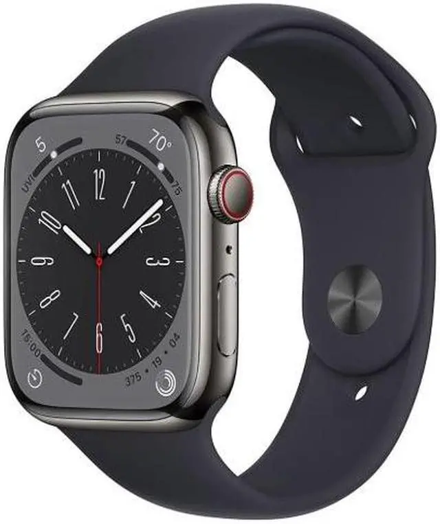 Apple Watch Series 8 41mm GPS + Cellular Unlocked - Graphite Stainless Steel Case - Black Sport Band (2022) - Good Condition