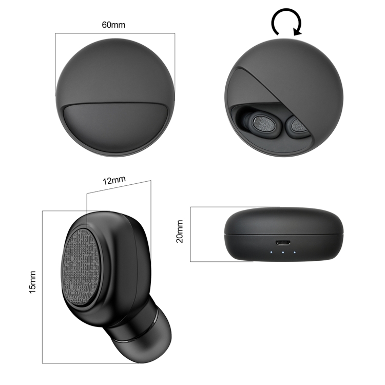 YH-03 TWS V5.0 Wireless Stereo Bluetooth Headset with Charging Case, Support Voice Assistant(Black)