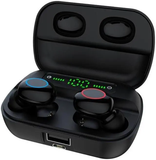 4. The middle LED digital display screen displays the power of the charging box, and the left and right breathing lights respectively display the battery power of the left and right earphones.