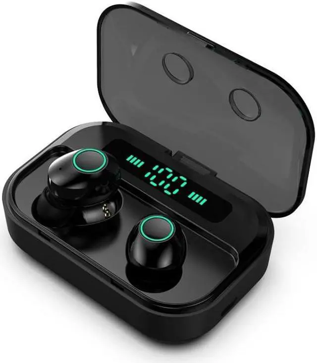 M7 TWS V5.0 Binaural Wireless Stereo Bluetooth Headset with Charging Case and Digital Display (Black)