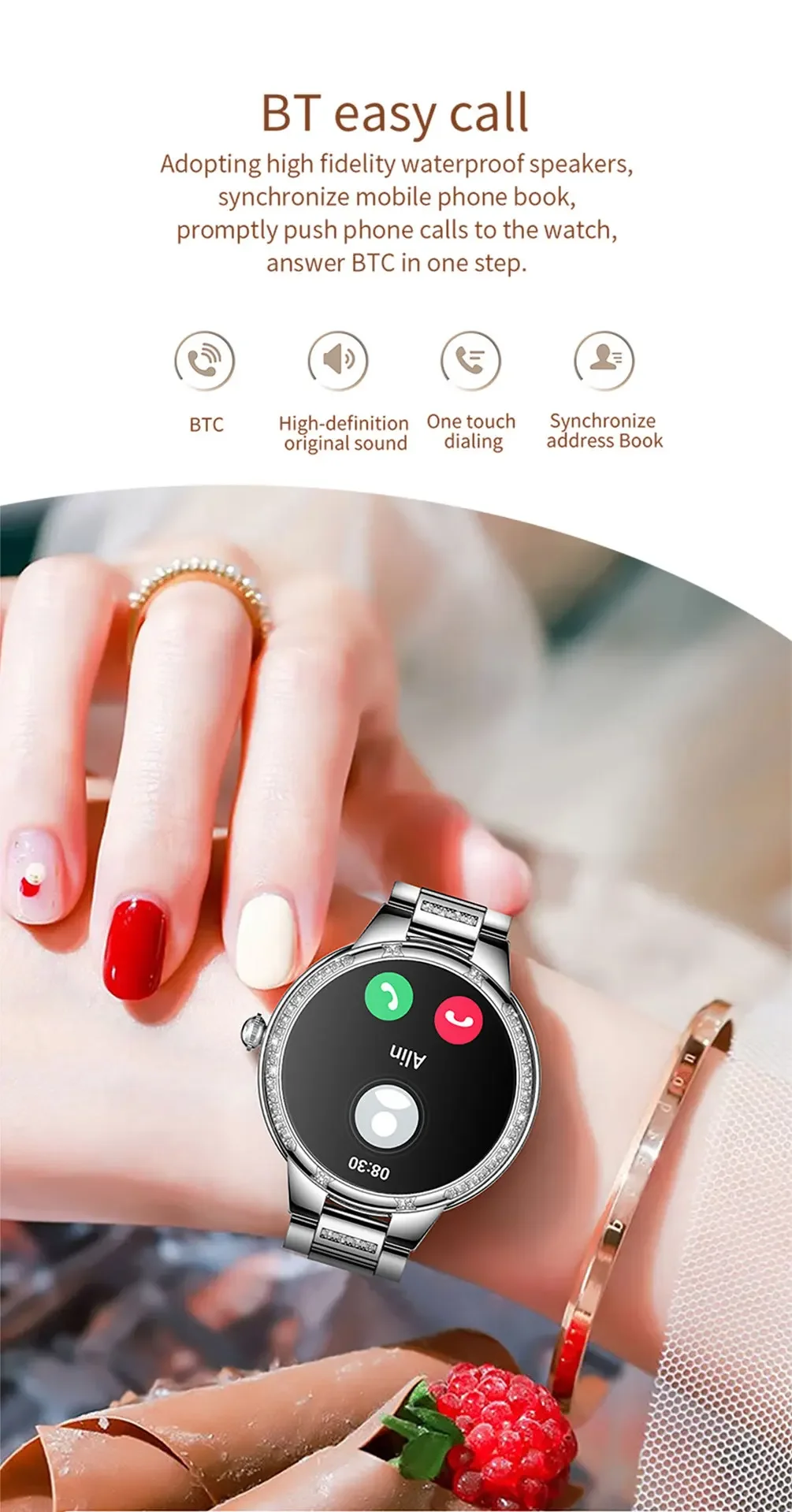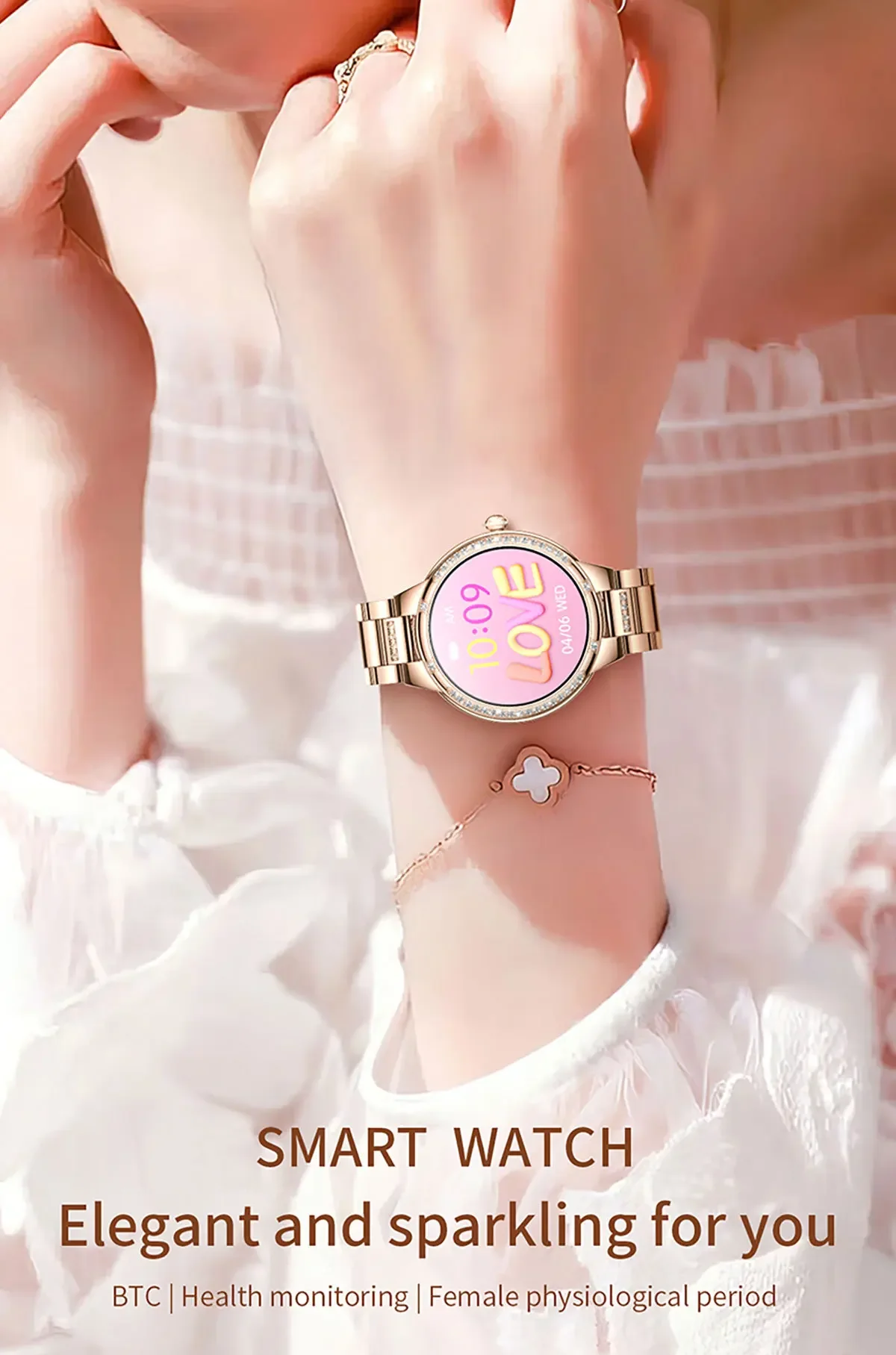 Smart Watch For Women Bluetooth Call Diamonds Smartwatch AI Voice Assistant Multi Dials IP67 Waterproof Ladies Wristwatch