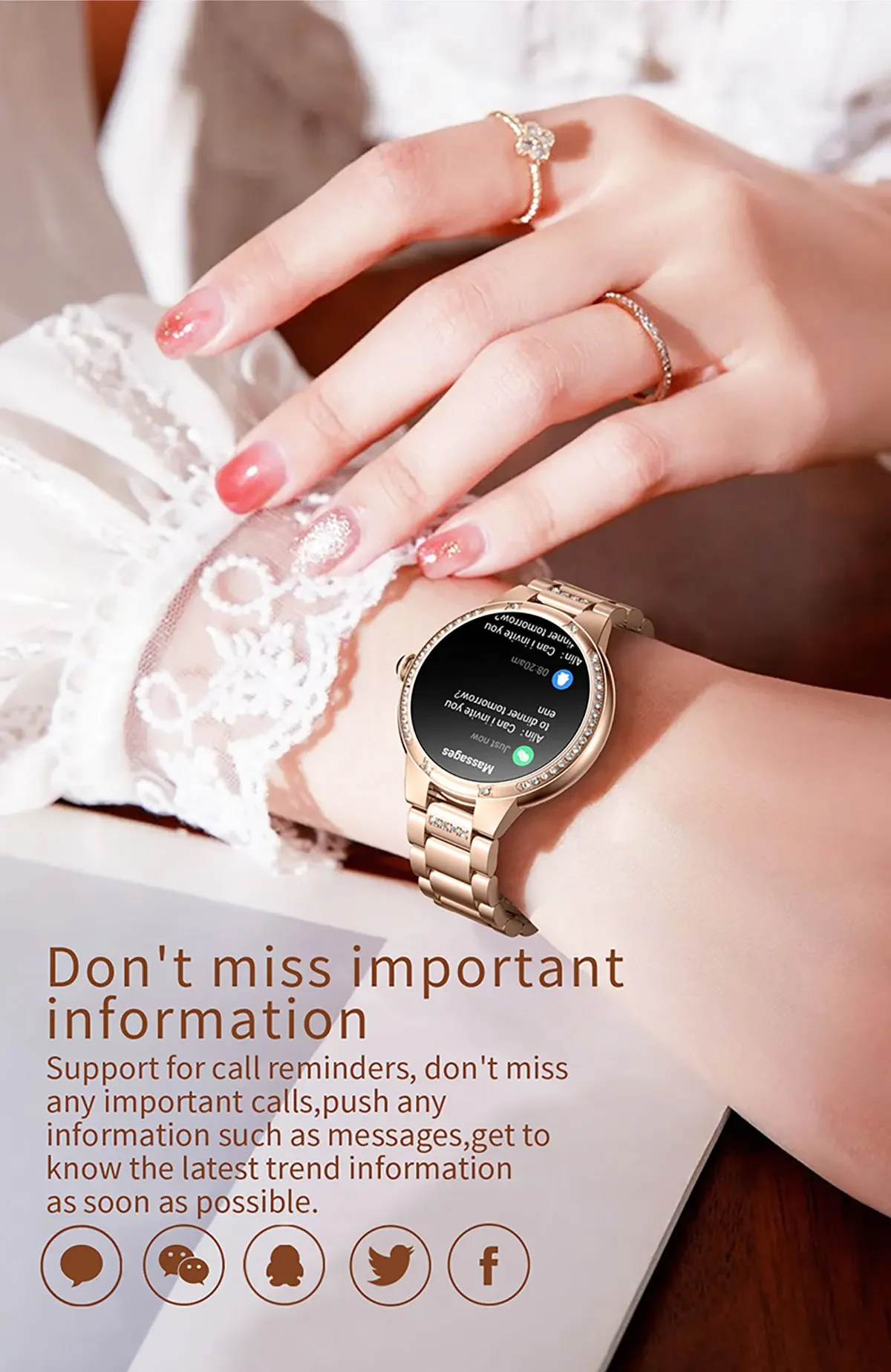 Function:Passometer,fitness tracker,sleep tracker,Message Reminder,Call Reminder,Answer Call,Dial Call,Remote Control,Push Message,Big Three Needles,Chronograph,Alarm Clock,Small Second,Power Reserve,Perspective Window,week,Phase of the Moon,Month,Heart Rate Tracker,Interactive Music,Noctilucent,Lighting