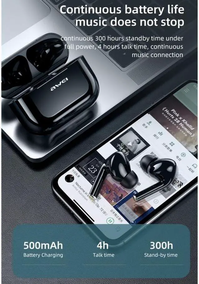 3. Charging compartment battery: 500mAh/3.7V, earbud battery: 45mAh/3.7V
