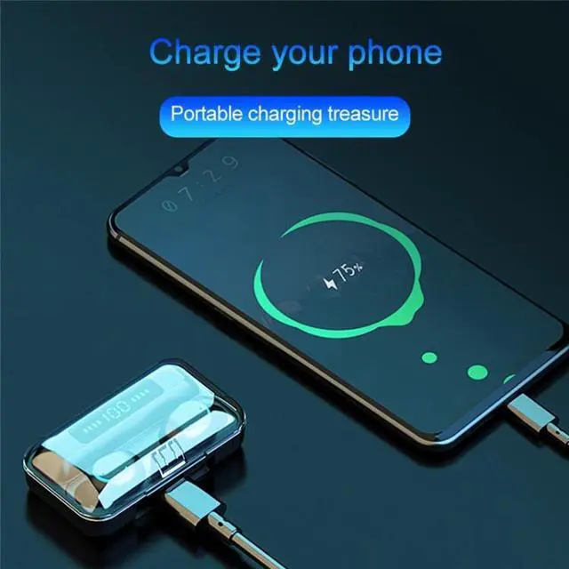 6. The middle LED digital display shows the battery power of the charging box, and the left and right breathing lights respectively display the battery power of the left and right earphones.