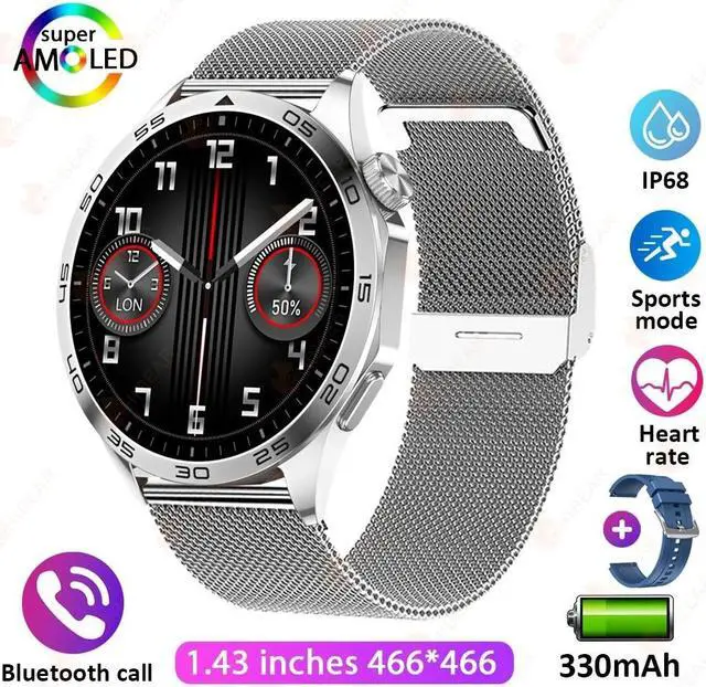 Bluetooth Call Men Smart Watch Men AMOLED HD Screen GPS Sport Fitness Watches 1.43 inch With Compass IP68 Waterproof Smartwatch