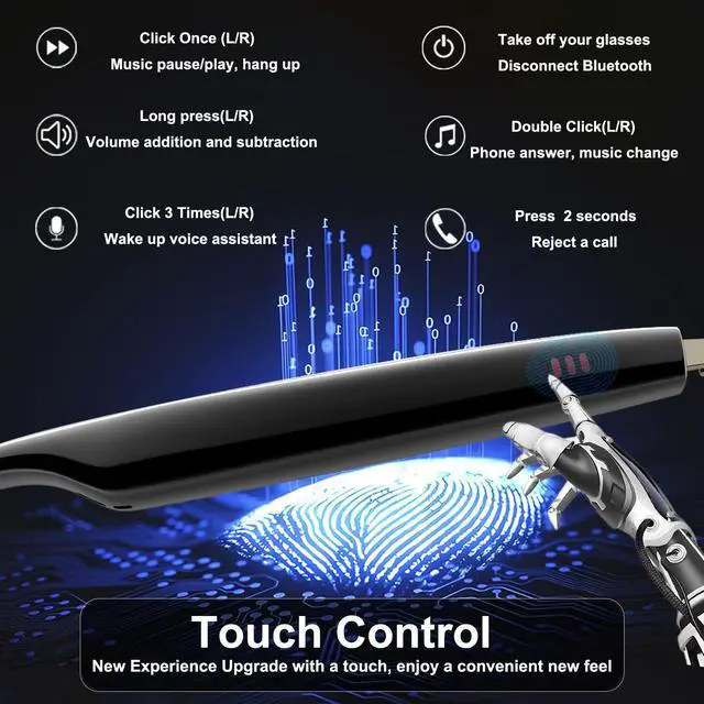Lightweight & Durable TR90 FrameMade from premium TR90 material, Fecoul smart glasses weigh only 32g. Lightweight yet flexible, they fit comfortably for men and women, suitable for long hours of work, study, or outdoor activities