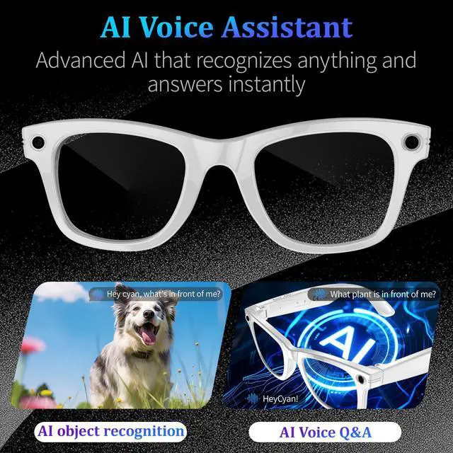 AI Voice Assistant & Object Recognition AI-powered smart glasses answer questions instantly and recognize objects, texts, and scenes during shopping, sightseeing, or work.