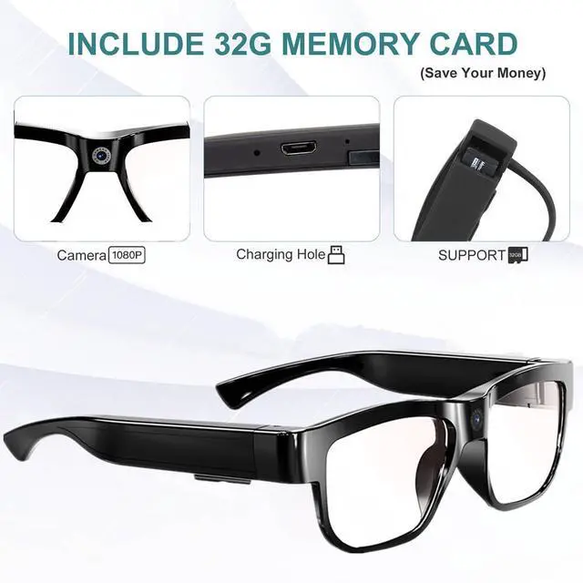 -HD 1080P Camera~the Glasses with camera can record the beautiful landscape in hiking, driving,watching live matches.you can connecting the camera glasses to your computer(the video can't be open on phone, When the capacity is full,it will cover the former video/picture.