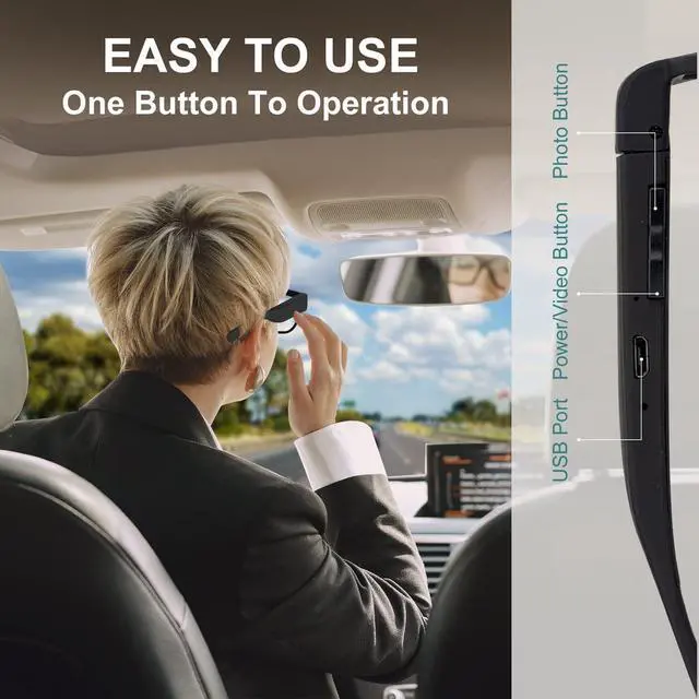 --Easy To Use, One Button To Start. Just Press The Button On Side Of Video Camera Glasses, You Can Start Recording.