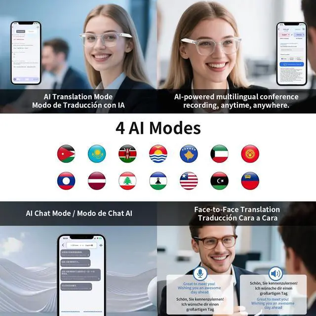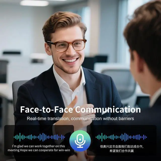 These AI translation glasses translate spoken language from others into your pre-set language and play it back in real time.