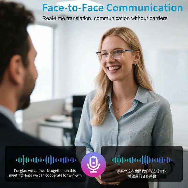 Designed for modern person who demand both style and functionality, these AI translation smart glasses combine cutting-edge technology with fashionable aesthetics.