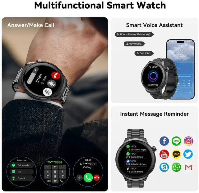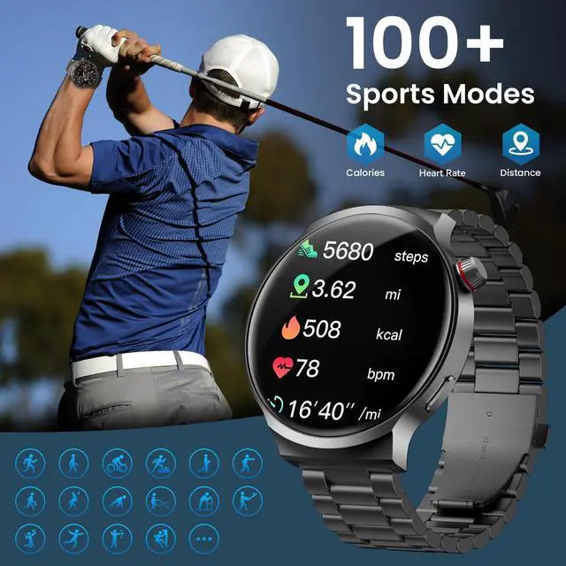 1.85 Extra Large Screen: Smart watches for men enjoy a stunning 1.85-inch IPS full-touch displaythe largest in its class. Designed for men with broader wrists and thicker fingers, it offers a more comfortable and responsive touch experience. The oversized screen delivers crisp visuals and intuitive interaction, making it an ideal smartwatch for those who value clarity and performance