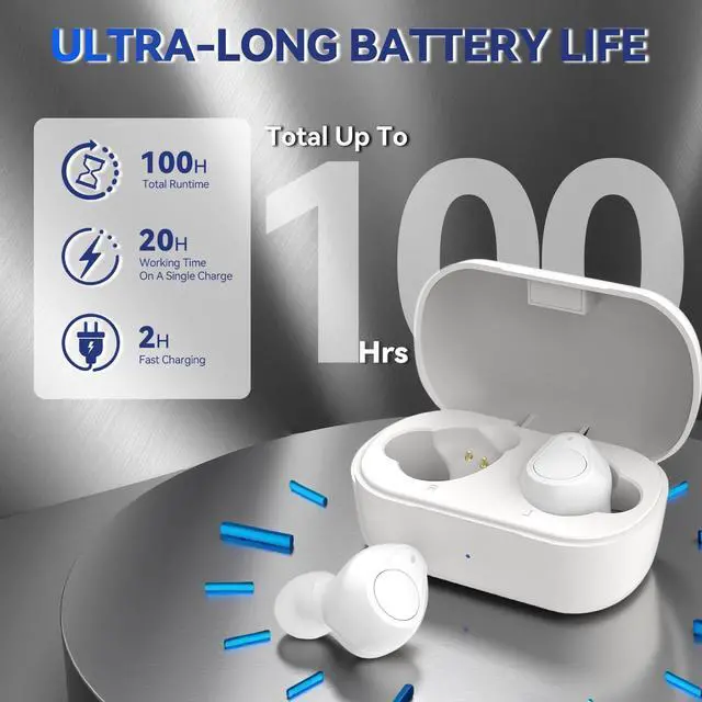 " Ultra-Long Battary Life : Total Up To 100+ Hrs.This rechargeable hearing aid has up to 18 hours single use time and it has speedy charging, with a single charging time only 1-2 hours. Portable charging case with 80+ hours usage time and support up to 100 hrs. The portable charging box allows you to charge at any time, so you don't have to worry about power issues."