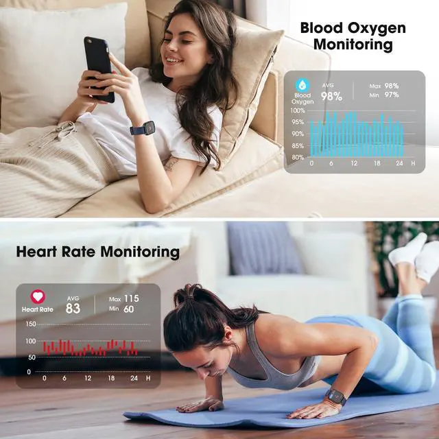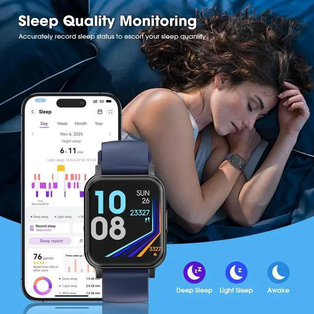 Heart Rate Monitor & Sleep TrackerEasily track your real-time heart rate and monitor your sleep patterns (deep sleep, light sleep and awake time), helping you adjust your lifestyle to improve your health.