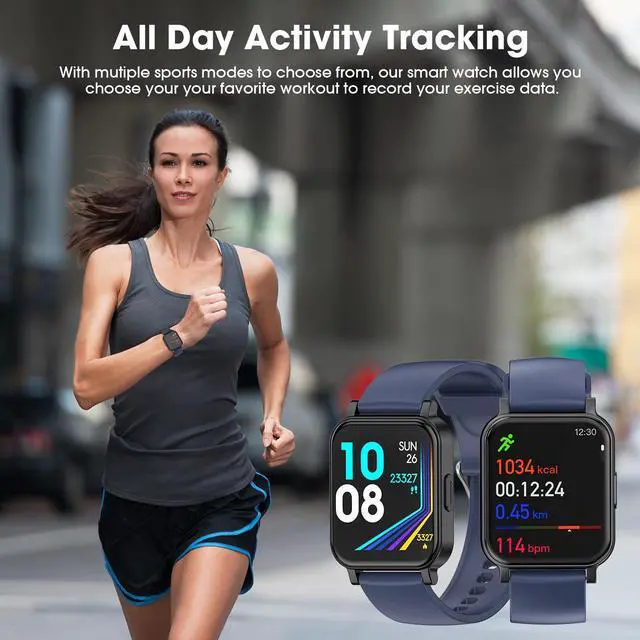 All-Day Accurate Fitness TrackerThe fitness watch has multiple sports mode to meet various exercise needs. It accurately records all-day activities, monitoring your daily steps, calories burned, distance walked, active minutes, and more.