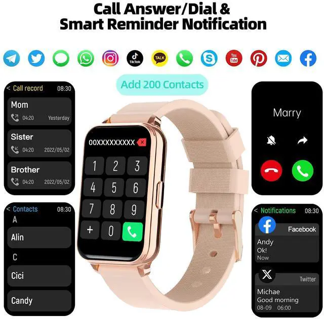 Make and Answer Phone Calls The fitness tracker watch is featured advanced Bluetooth call functionality, you can effortlessly make and answer calls directly from your wrist, keeping you connected while on the go. Stay updated with instant notification alerts for messages, ensuring you never miss an important communication during your workouts or busy days.