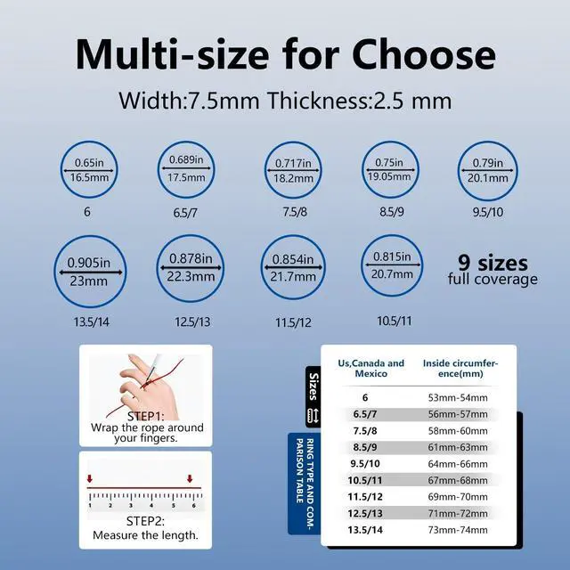 Hypoallergenic resin and stainless steel construction. Available in Black and Rose Gold colors. Seven sizes (US 7-13) for perfect fit.