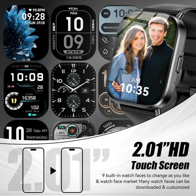 2.01" HD Touchscreen Display: Smart watch for men women features a large, high-definition touch screen with clear visuals and smooth operation, delivering a comfortable and intuitive user experience for daily use