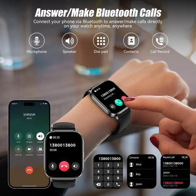 Bluetooth Calling Function: Built-in Bluetooth chip allows you to make and receive calls directly from your watch, freeing your hands while driving, working, or exercising