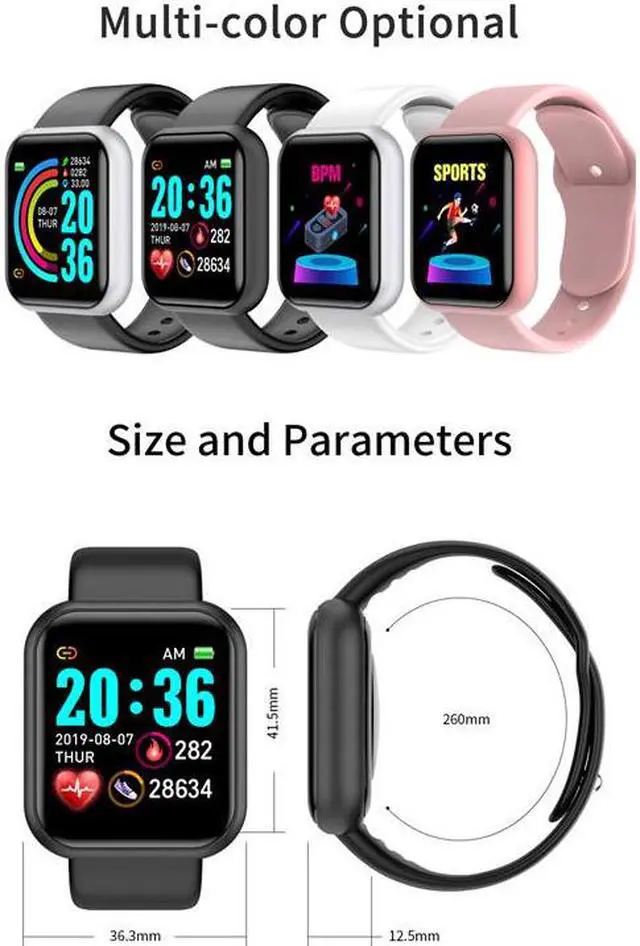 Tips: 1. This product can only seurface splash waterproof (Cool water), please don't wear it to swim, drop it to the water or soaked in water ect. 2. when you first receive the product, charge it for 5-10 minutes at first if it cannot be turned on because it is already low on power. 3. Please contact us if the product has quality problems, we will reissue for you (Welcome wholesale and single purchase: Usually bubble paper packaging to prevent product damage, if more products are purchased, we can use carton packaging as you wish) D20 Pro Smart Watch Men Sport Bluetooth Wristband Blood Pressure Count Monitoring Heart Rate Fitness Bracelet Tracker