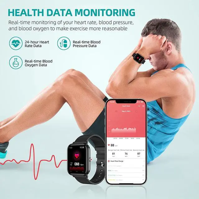24 Sports Modes & 5 Atm Waterproof: This fitness watch features 24 sports modes to check all-day activity data like steps, distance. Water-resistant up to 50 meters, you can wear the fitness tracker for swimming, and it will record your achievements even underwater.