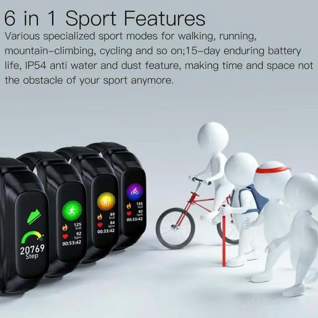 8. Functions: audio-visual entertainment, step counting, mobile positioning, call, social entertainment, smart reminder, remote control selfie, health monitoring, information push, tracking/alarm, exercise tracking, sleep analysis