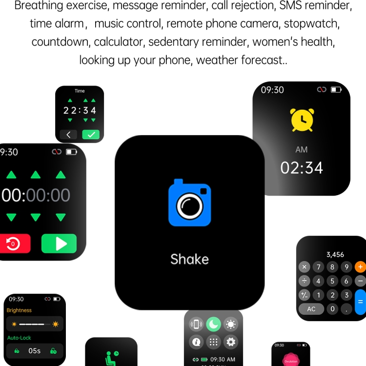 12. Supports real-time ECG analysis with chest stickers, ECG belt monitoring, non-invasive blood sugar, heart rate monitoring, blood pressure monitoring, blood oxygen monitoring, and multi-sport modes.