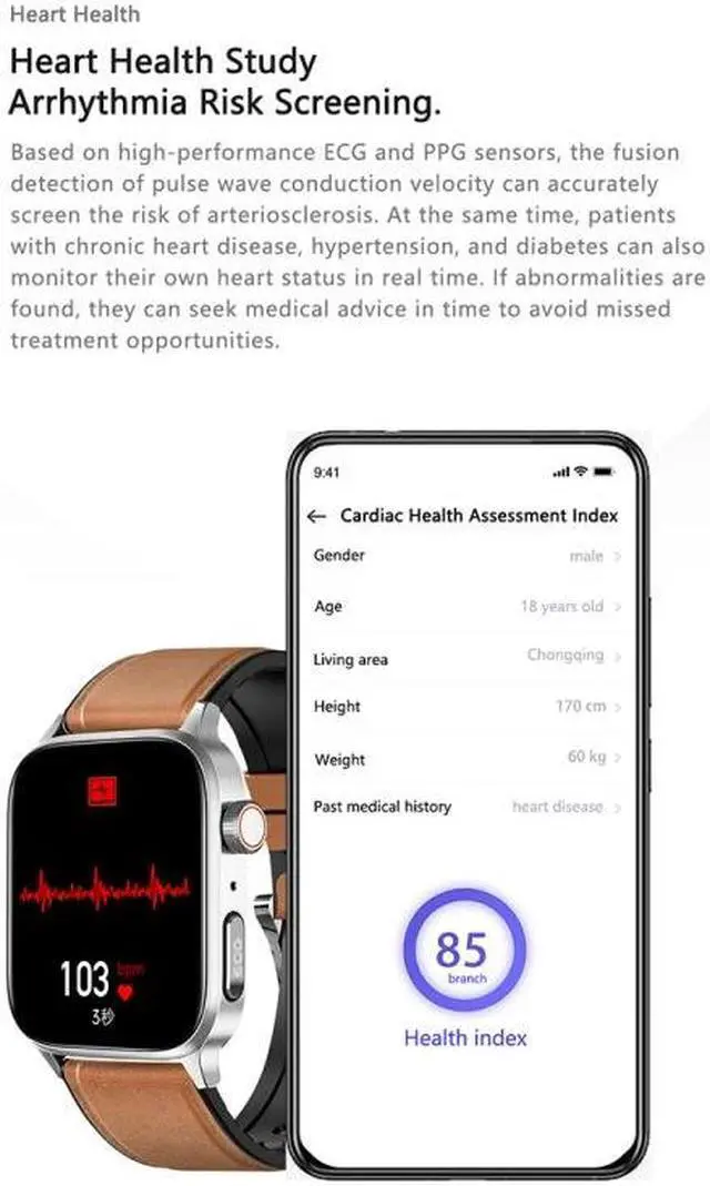 2. Support value-added functional services such as heart health + stroke warning + arrhythmia + new crown monitoring.