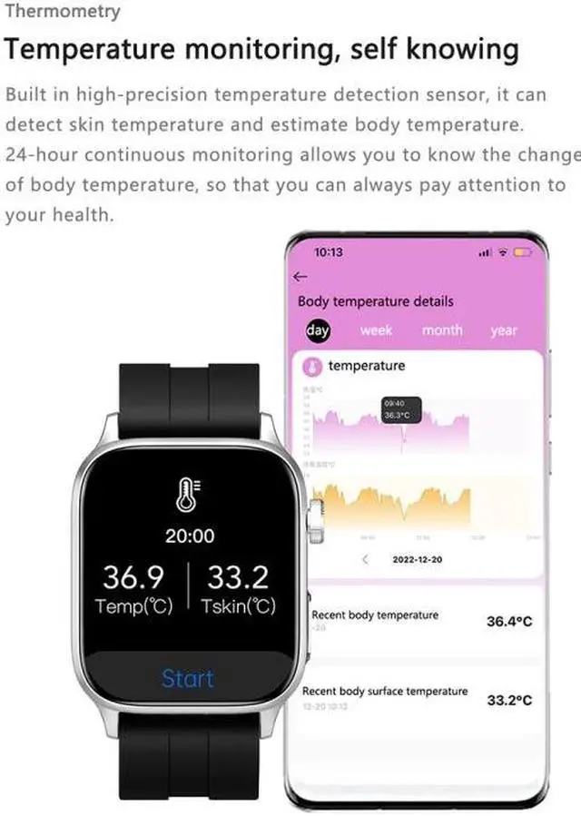 1. American TI company ECG professional ECG + accurate body temperature + optical blood oxygen + PPG heart rate + PPG blood sugar + PPG blood pressure and other 6 major signs data professional medical health watch.