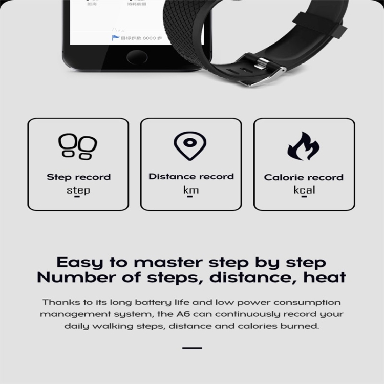 2.Time/clock display, step, calories, distance