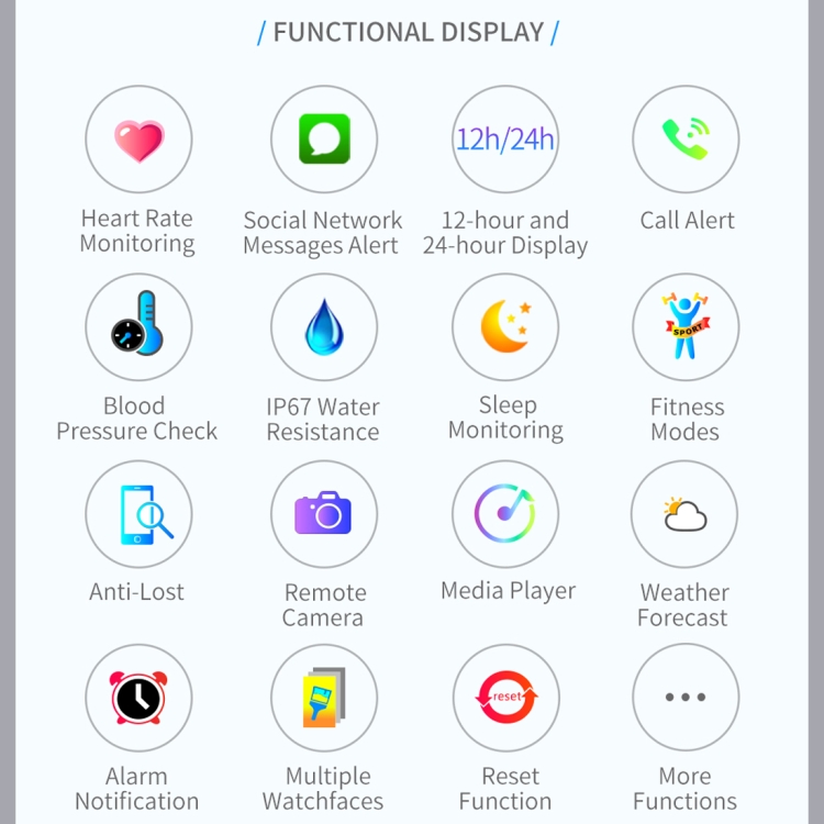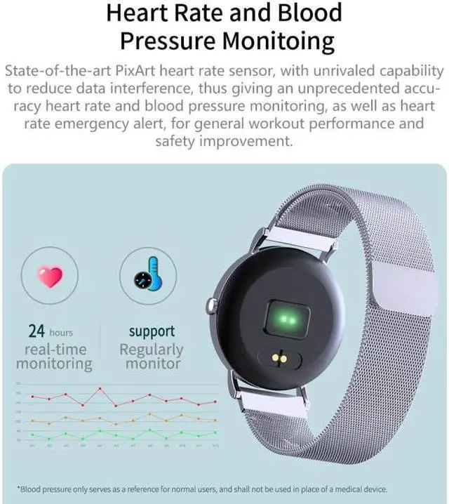 8. Function: heart rate monitoring, high heart rate reminder, blood pressure monitoring, call reminder, call rejection, GPS motion track, sleep monitoring, music control, photo control, sedentary reminder, find mobile phone, timer, brightness adjustment, alarm reminder , step by step + calories + distance, goal to reach a reminder, one-click reset