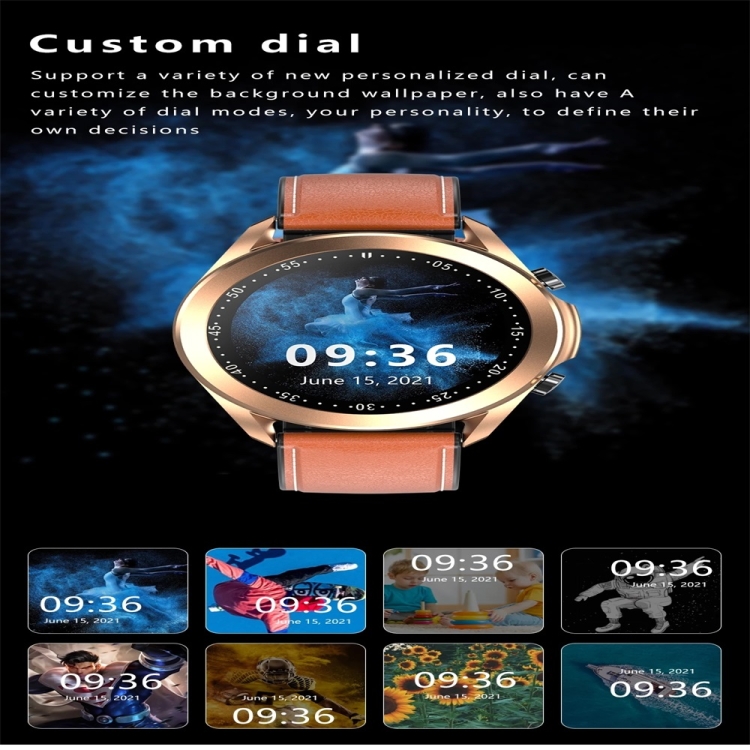 DW95 1.28 inch Color Screen Smart Watch, IP67 Waterproof,Leather Watchband,Support Bluetooth Call/Heart Rate Monitoring/Blood Pressure Monitoring/Blood Oxygen Monitoring/Sleep Monitoring (Si