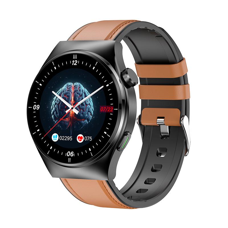 F320 Laser Physiotherapy Bluetooth Call Uric Acid Blood Lipid Noninvasive Blood Glucose Measurement Heart Rate Body Temperature Smart Watch (Brown Leather)