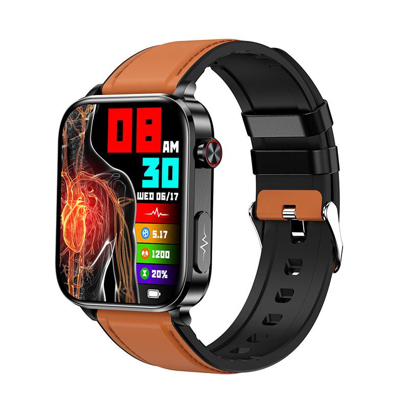 Tk15 Ecg Blood Glucose Uric Acid Bluetooth Call Smart Watch Body Temperature Heart Rate Multi-Sport Smart Watch (Brown Leather)