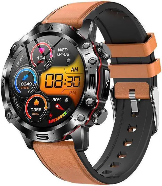 2024Et482 Bluetooth Call Ecg Non-Invasive Blood Glucose Smart Watch Multi-Sport Smart Watch (Brown Leather)