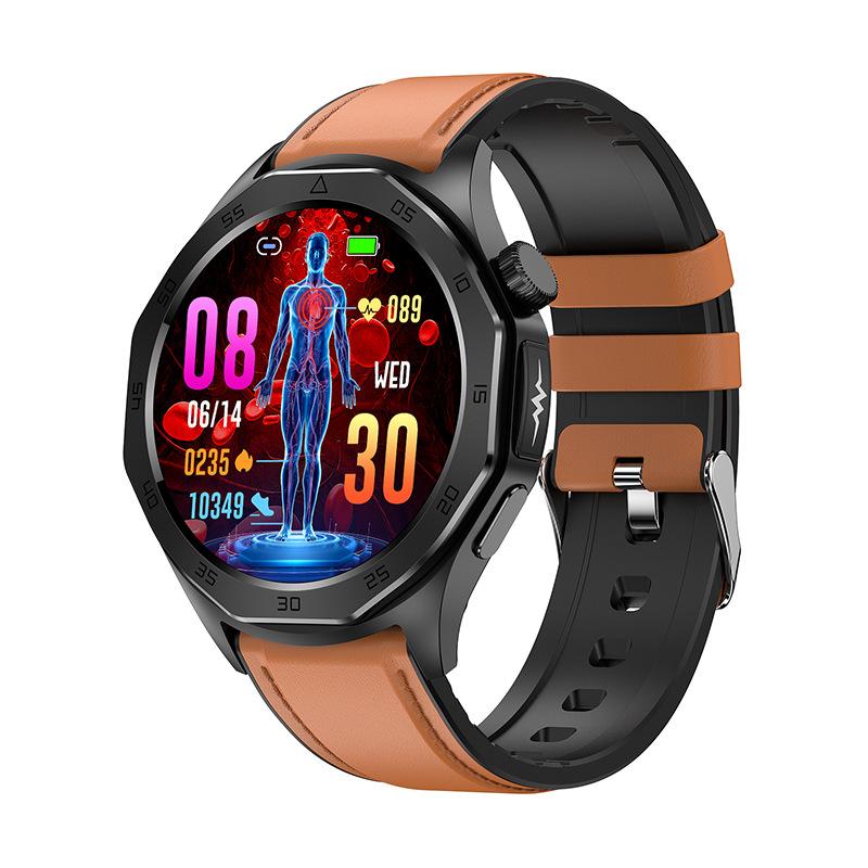 Et480 Ecg Bluetooth Call Body Fat Blood Pressure Blood Glucose Heart Rate Blood Pressure Women's Health Multi-Sport Smart Watch (Brown Leather)