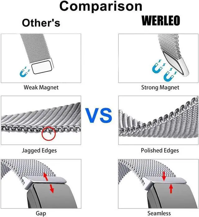 - Decent quality: Premium stainless steel material with solid wire mesh and magnetic Milanese loop, makes it comfortable and safe for human skin to wear, no allergies! -