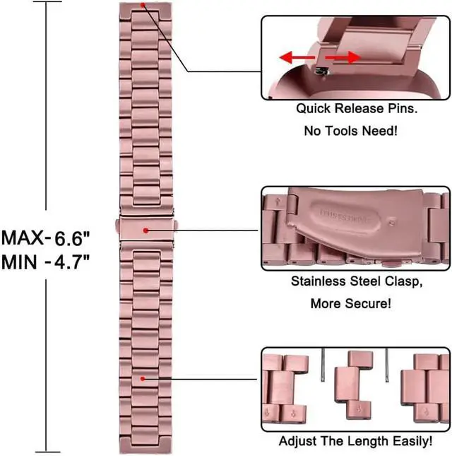 Package Included: 1 x Fitbit Versa Metal band + 3 x Quick Release Pins + 1 x removed tool