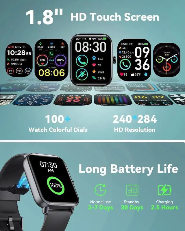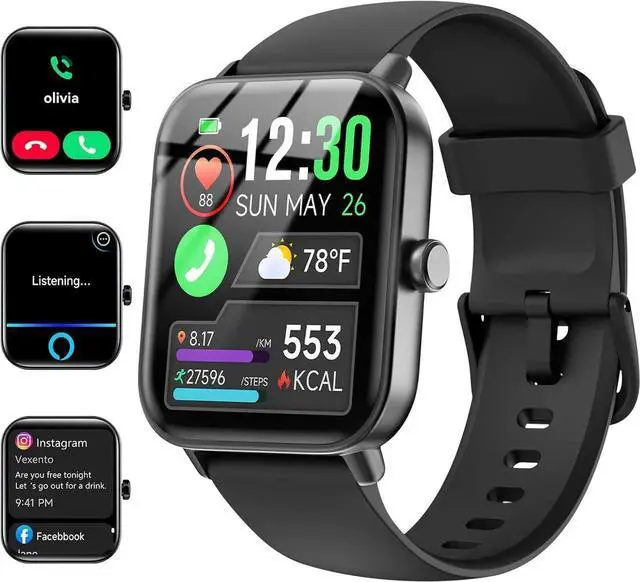 The Upgraded fitness watch is equipped with built-in hd speaker, with Bluetooth 5.3, you can answer/make calls directly from your smart watches when your phone is out of reach, and you can also view your call history, frequent contacts, and dial-up calls. Fitness Tracker work with Alexa, you can inquire about news, weather, set alarms, helping us to live more conveniently, smarter, and healthier.