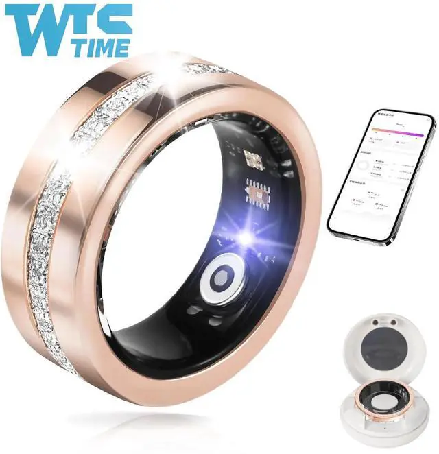 Wise Time 2025 New Rose Gold/Silver Smart Ring Fitness Tracker Ring - Health Sleep Heart Rate Blood Oxygen Blood Pressure Tracker,Fashionable Diamond Style,IP68, Compatible with iOS,Android