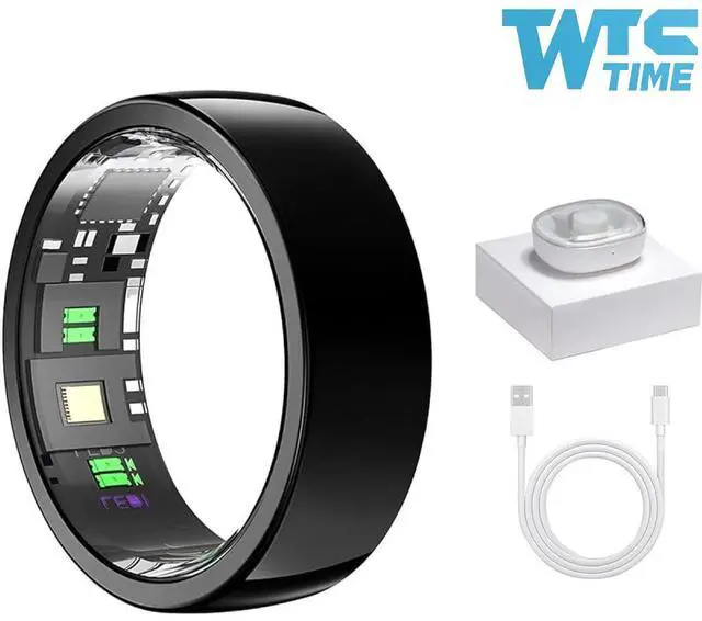 Wise Time Smart Ring Health Tracker with Free Subscription, Gesture Remote Beauty Shot & Brush Video, Fitness Sleep Heart Rate Tracking Ring with Charging Case, Compatible with iOS & Android Black 10#
