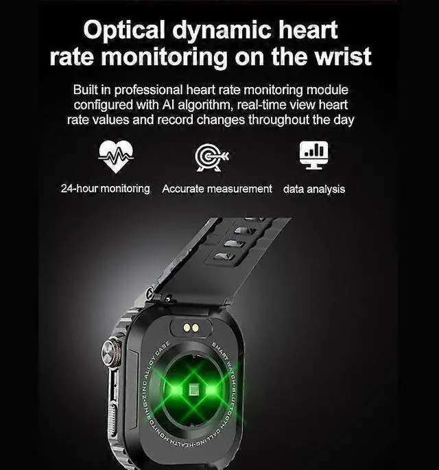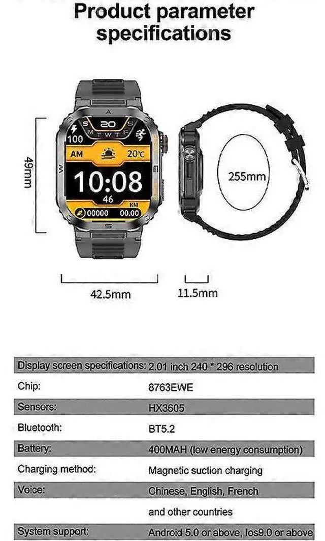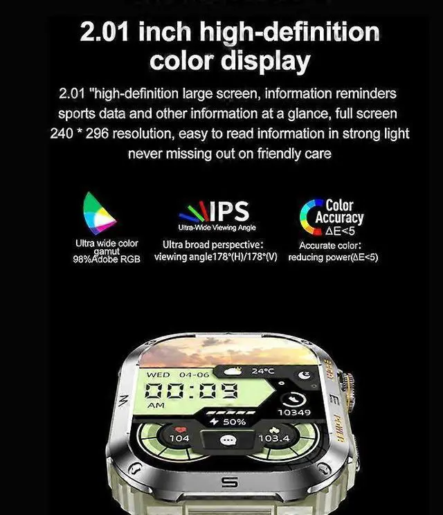 Stay connected and healthy with this advanced smartwatch, featuring a vibrant 2.01 -inch HD color screen for clear visibility in any light.