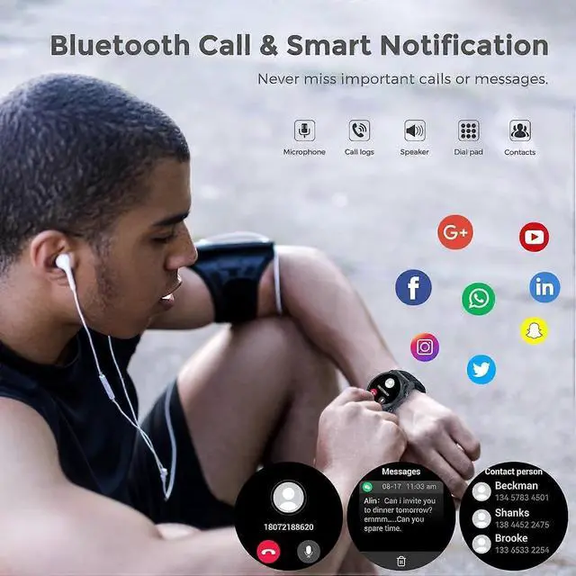 - **Bluetooth Calling & Notifications**: Answer/make calls directly and receive alerts from apps like WhatsApp, Facebook, and more.